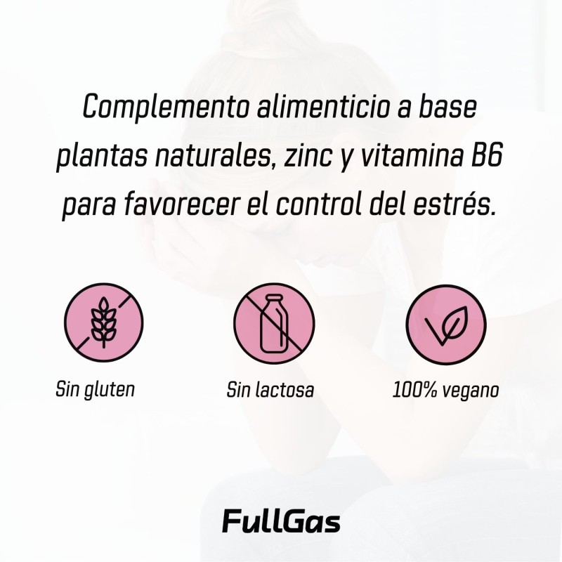 - Complemento alimenticio a base de plantas naturales, zinc y vitamina B6 para favorecer el control del estrés.