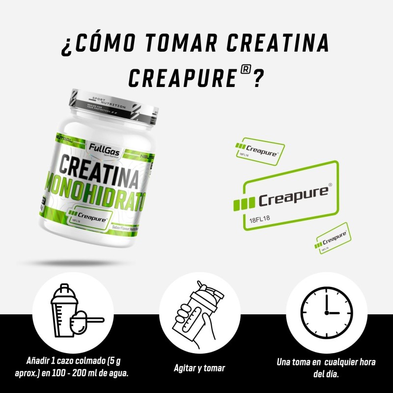 La respuesta depende de con qué creatina la compares. Si la comparas con la creatina monohidrato 200 mesh de FullGas, ambos productos comparten características esenciales: son 100% monohidrato de creatina, con la máxima pureza, libres de degradación y de contaminantes habituales del proceso de síntesis química. La principal diferencia radica en que Creapure® cuenta con un sello de garantía adicional que certifica su calidad a través de estrictos controles europeos, mientras que la creatina 200 mesh de FullGas también es un producto de calidad respaldado por altos estándares de fabricación.