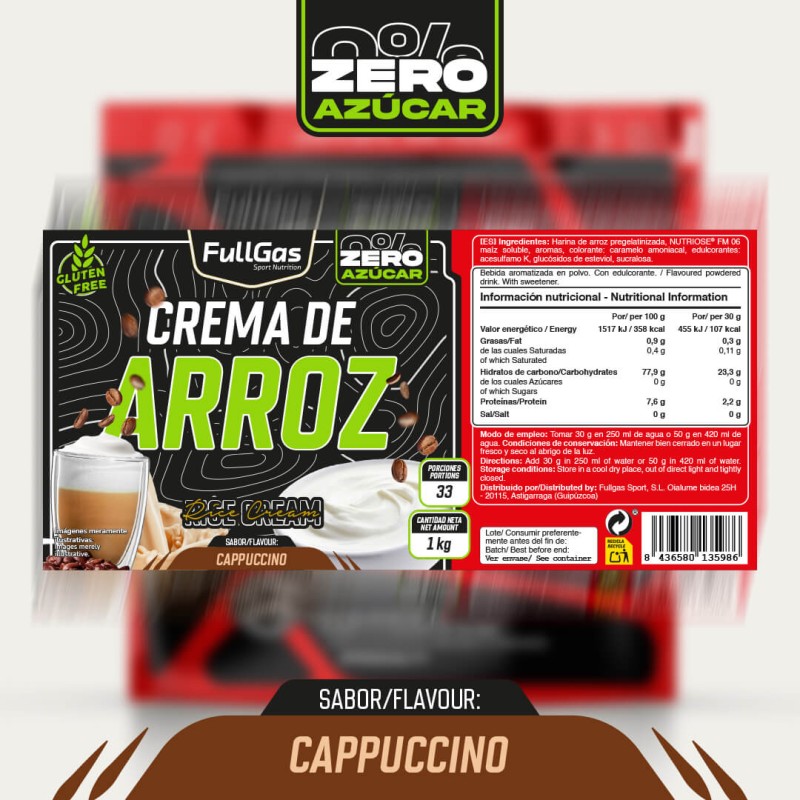 La crema de arroz ZERO de FullGas es harina de arroz 100% pregelatinizada, una excelente fuente de hidratos de carbono sin gluten, formulada para garantizar una digestión rápida y eficiente.