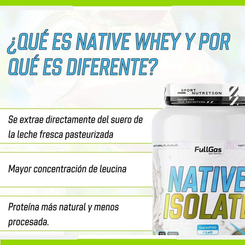 La Native Isolate de FullGas es un aislado de proteína de suero nativa baja en esporas diseñada para quienes buscan calidad y pureza. Con materia prima española NatWPI90 (InLeit®) obtenida directamente de leche fresca de pequeños ganaderos gallegos, su proceso único y respetuoso preserva al máximo los nutrientes esenciales, resultando en una proteína de suero nativa que redefine los estándares de calidad en el mercado.