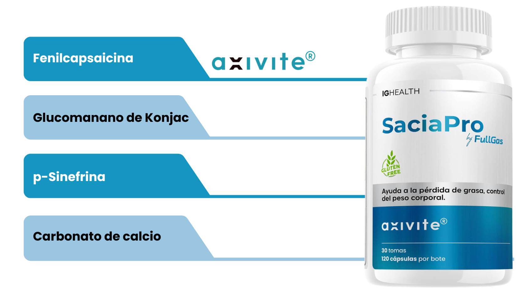 SaciaPro es un complemento alimenticio formulado por Ismael Galancho que contribuye al control del peso y favorece la degradación de los lípidos (extracto naranja amarga). Además, contiene fenilcapsaicina, glucomanano de konjac y calcio, que contribuye al normal funcionamiento del metabolismo energético y funcionamiento de los músculos.